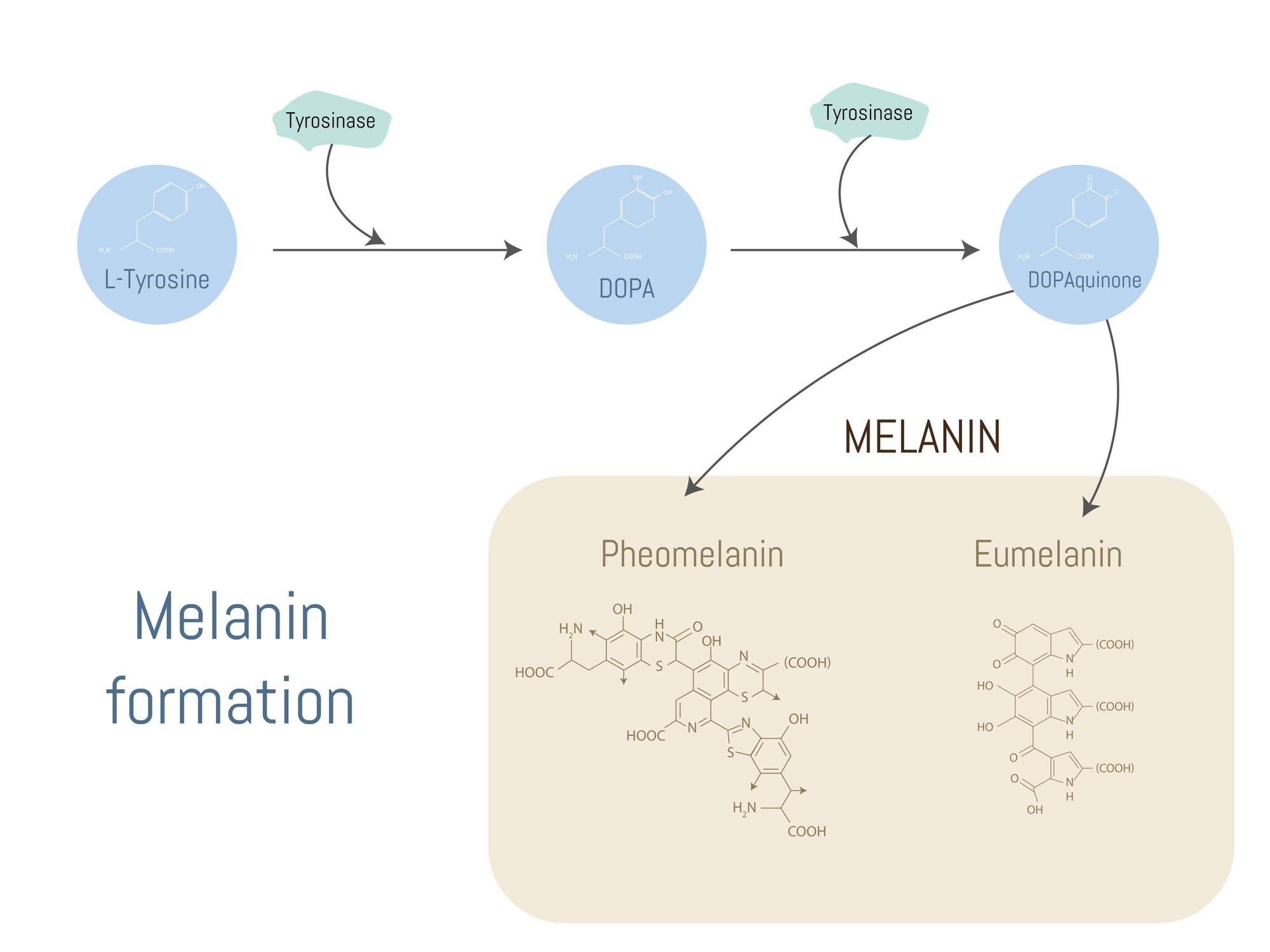 Tyrosinase is an enzyme crucial for the production of melanin, the pigment responsible for the color of our skin, hair, and eyes. Melanin is synthesized in melanocytes, cells located in the basal layer of the epidermis. The enzyme catalyzes the oxidation of tyrosine to DOPA and subsequently to DOPAquinone, leading to melanin formation.